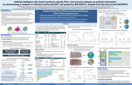 | 학회 | Artificial intelligence (AI)-based membrane specific PD-L1 and immune subtypes as predictive biomarkers for danburstotug in relapsed or refractory extranodal NK/T cell lymphoma (R/R ENKTL): Insights from the Phase Ⅱ trial (DISTINKT) | 2025 ASH(American Soceity of Hematology) | 2025-12-08 |